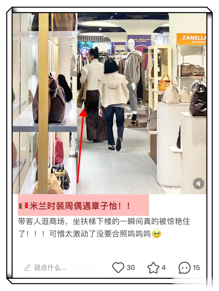 有网友在米兰逛商场的时候,偶遇了章子怡,不得不说这真的很有缘分!